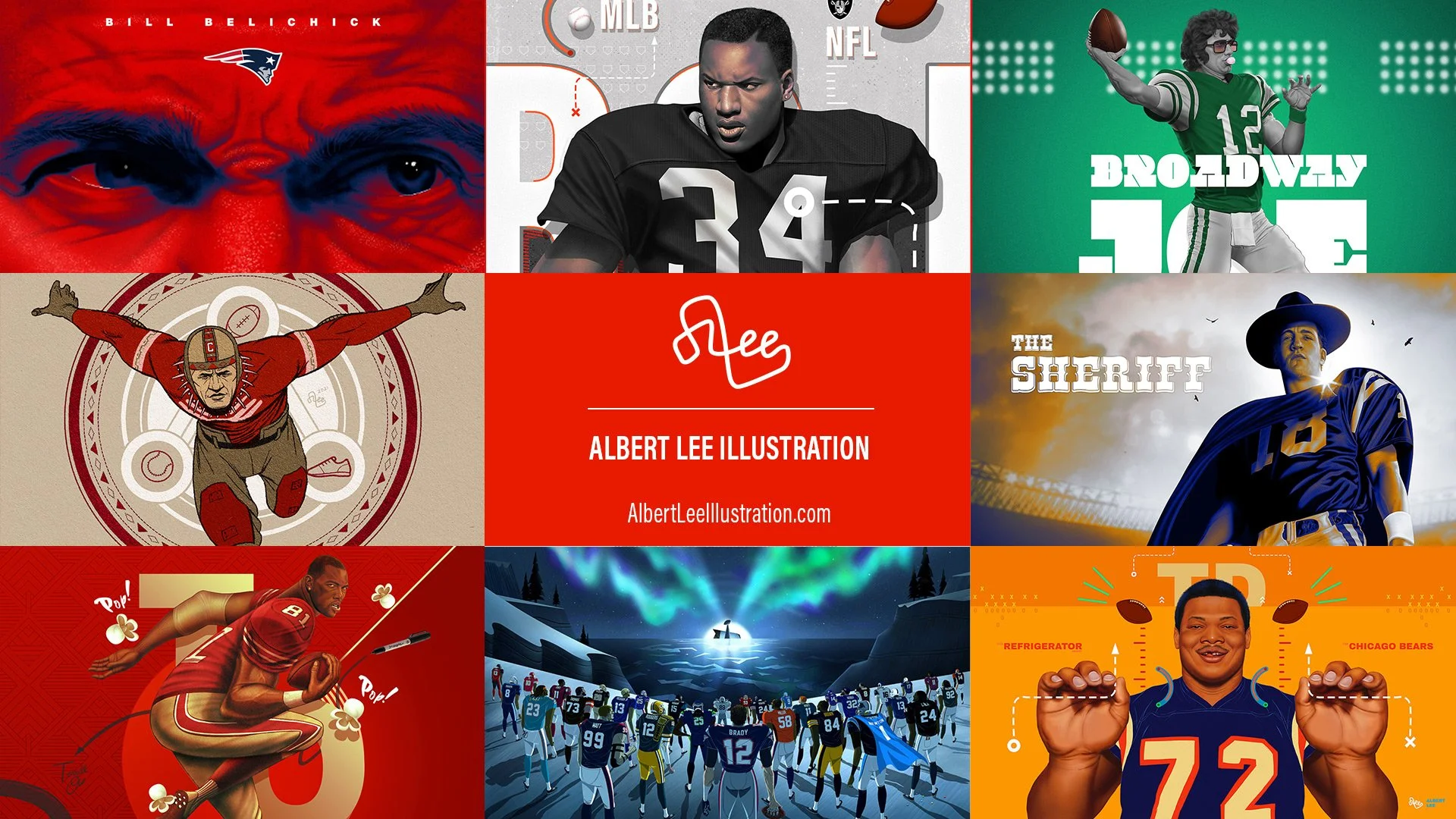 In March of 2021, I was commissioned to illustrate 9 portraits for a massive 600 foot mural located at the NFL West Coast HQ in Inglewood at SoFi Stadium Park. Among 22 artists, I was asked to illustrate the following influential individuals: Bill Belichick, Bo Jackson, Jerry Rice, Jim Thorpe, Joe Namath, Peyton “The Sheriff” Manning, Terrell Owens, Tom Landry, William “Refrigerator” Perry.